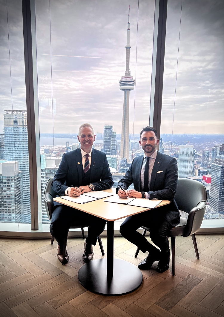 Alberta Minister of Affordability and Utilities Nathan Neudorf and Ontario Minister of Energy and Mines Stephen Lecce sign historic agreement on electricity interties.
