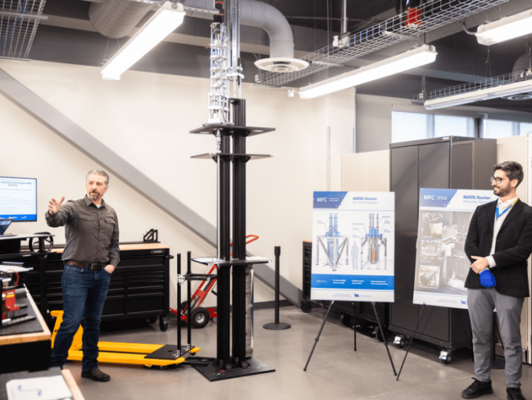 Microreactors are a type of advanced nuclear reactor designed to be built in a factory and delivered to a site. Some are small enough to fit in cargo containers. MARVEL, an 85-kilowatt, sodium-potassium-cooled microreactor being assembled at the Idaho National Laboratory (INL), is compact about 15 feet tall and 4 feet wide, roughly the size of two telephone booths stacked on top of one another.