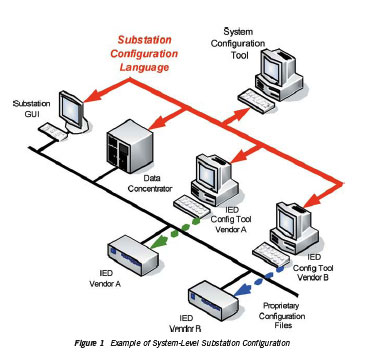 - Design the whole substation.Such a tool must not focus on a single device, but permit an engineer to start with a one-line diagram for the substation, add functions, and then map those functions to devices.To continue the progression stated above, the System Level (Substation) Configuration Tool of the future should allow the engineer to acquire the IED Capability Description (ICD) files from the new IEDs, drag-n-drop the functions they have already defined onto the IEDs, and then generate a Configured IED Description (CID) file that the IED level configuration tool would use.