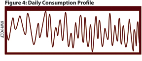 The ADE requests finer resolution data in certain time periods from the Head-End, MDM, or CIS that is storing the interval data. Figure 4 shows the daily consumption profile for the month following the expected occupancy of Figure 2. The profile clearly shows an abnormally erratic consumption pattern, indicating mechanical failure of the meter.